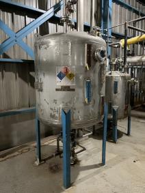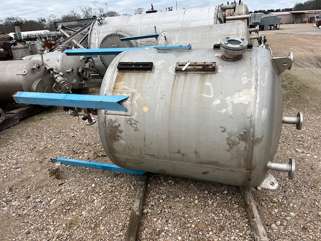 Used 375 gallon vertical 304 stainless steel receiver. Mfg. by Alloy Fabricators in 1991. 4'0" diameter x 3'8"T/T 15 psi @ 250 deg. F. Dished heads, on leg supports.
