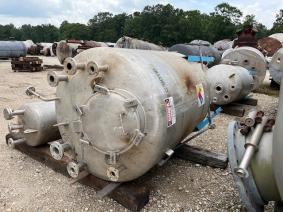 Used 690 gallon vertical 304 stainless steel receiver. Mfg. by Alloy Fabricators in 1991. Top 20" manway. On leg supports. Dished heads.