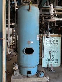 Used 660 gallon vertical carbon steel air receiver. Mfg. by Manchester in 1991. 150 psi @ 650 deg. F. Dished heads, on skirt support.