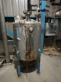 Used vertical stainless steel vessel; Dished heads and on leg supports.