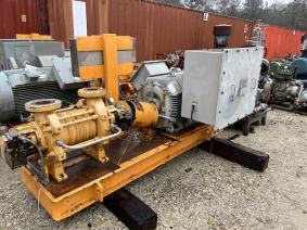 Used high pressure multistage ring section pump. Mfg. by Goulds. Horizontal. Model #3393. Pump case 3600 rpm. 5 x 4 x 10, 421 gpm @ 1429 ft. head. Chrome Moly material. 300 hp, 3561 rpm, 4000 volts.