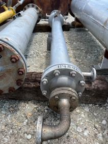 Used 75 sq. ft. vertical exchanger. Mfg. by Yula in 2018. 6" diameter x 8'0" F/F. Shell is 304L stainless steel, tubes and heads are 316L stainless steel. 150FV @ 400 deg. F. shell. 150FV @ 400 deg. F. tubes. (71) 1/2" O.D. x .049". With expansion joint.
