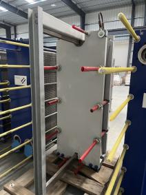Unused 636.5 sq. ft. plate exchanger. Mfg. by Alfa Laval in 2023. MAWP: 150/FV psig @ 356 deg. F. MDMT: 150/FV psig @ -20 deg. F. Model T21-MFG. A-Dim 302 mm with (66) 0.6 mm plates.