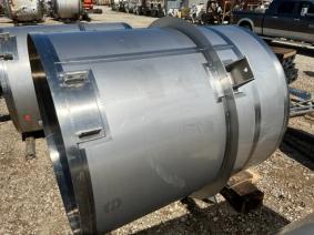 Used 304 polished stainless steel single wall tank. Mfg. by ICC Northwest in 2021. 651.5 Gallon capacity, 54" diameter x 60" high. (2) internal sidewall baffles. Dished bottom head. On lug supports. Bottom 2" TC (CBO).