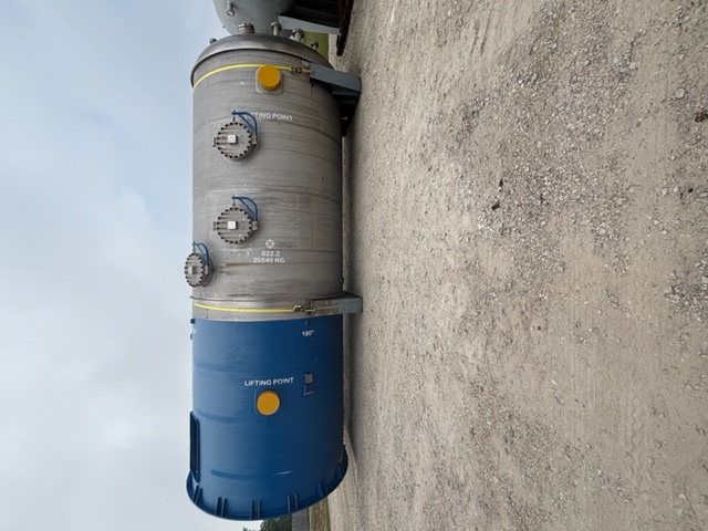 Unused 19,570 gallon vertical 304L stainless steel vessel with 316L stainless steel coil. Mfg. by Equipromex (Mexico) in 2022. Continuous bleacher. 12'6" diameter x 17'9" T/T. On 14'0" skirt support. Wall thickness .50". 2:1 elliptical dished heads .409" thick. Agitator: Mfg. by Chemineer Model #22GTN-3, 3 hp, 1200 rpm input, 30 rpm output, 230/460 volts.