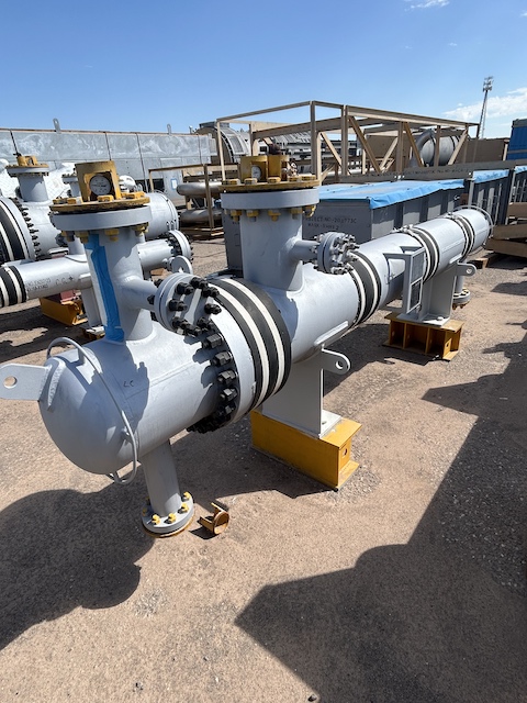 Unused 234 sq. ft. horizontal heat exchanger. Mfg. by Wuxi Chemical Equipment 2023. 3.6 Design duty (MMBTU/Hr).  Shell Design Rating: 180/FV psig @ 430/300 deg. F. Tube Design Rating: 232/FV psig @ 430/400 deg. F. Shell mawp 186.7/FV psig. Tube mawp 532/FV psig. 15.5" 108"; T-100002 Recirculating exchanger. Under Nitrogen Purged.