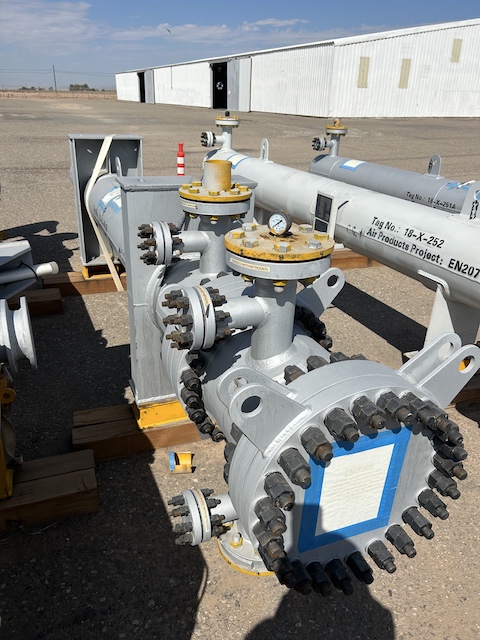 Unused 333 sq. ft. horizontal heat exchanger. 7.9 Design duty (MMBTU/Hr). Mfg. by Wuxi Chemical Equipment (China) in 2023. Shell Design Rating: 370/FV psig @ 300 deg. F. Tube Design Rating: 285/FV psig @ 330 deg. F. Shell mawp 662.3/FV psig @ 300 deg. F. Tube mawp 288.3/FV @ 330 deg. F. 15.5" X 16'7.5". Feed/Effluent exchanger. Under Nitrogen Purged.