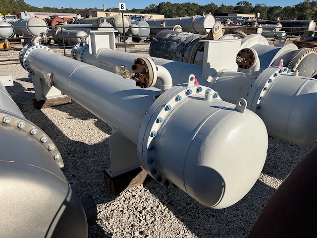 Unused 327 sq. ft. horizontal heat exchanger. 1.13 Design duty (MMBTU/Hr). Mfg. by Southern Heat Exchanger in 2023. Shell: 150FV psi @ 375 deg. F. Tubes: 161 psi @ 375 deg. F. 20" X 180". Aerobic Reactor Heat Exchanger. Under Nitrogen Purge