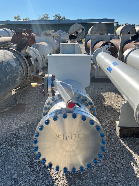 Unused 327 sq. ft. horizontal heat exchanger. 1.13 Design duty (MMBTU/Hr). Mfg. by Southern Heat Exchanger in 2023. Shell: 150FV psi @ 375 deg. F. Tubes: 161FV psi @ 375 deg. F. 20" X 180". Aerobic Reactor Heat Exchanger. Under Nitrogen Purge.
