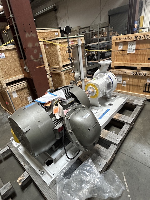 Unused Centrifugal Pump. Rail Car Unloading Pump, Spur#6. Mfg. by Sulzer. Size 8X6X15. 1925 gpm @ 219.5' head. 278 psi @ 190 deg. F. Duplex SS. With 200 hp motor.