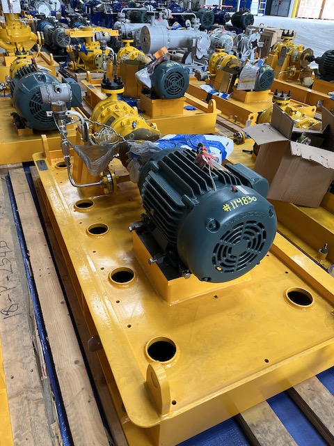 Unused Magnetic Driven Single Stage Centrifugal Pump. Ammonia Stripper Reflux Pump. Mfg. by Sundyne HMD Kontro. 46 gpm @ 246 head. 580 psi @ 170 deg. F. Casing 25% Chr Duplex St. Impeller 25% Chr Duplex St. With 15 hp motor.
