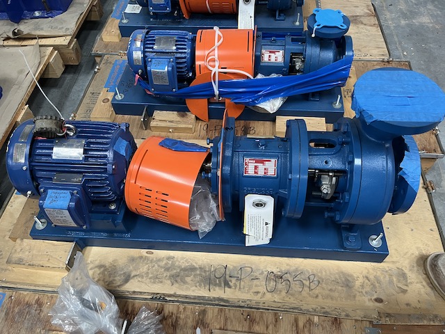 Unused Horizontal Centrifugal Pump. Sludge Recycle Pump. Mfg. by Griswold. Size 4x3x8. 180 gpm @ 51' head. Casing: Ductile Iron. Impeller: Duplex SS. 5 HP motor.