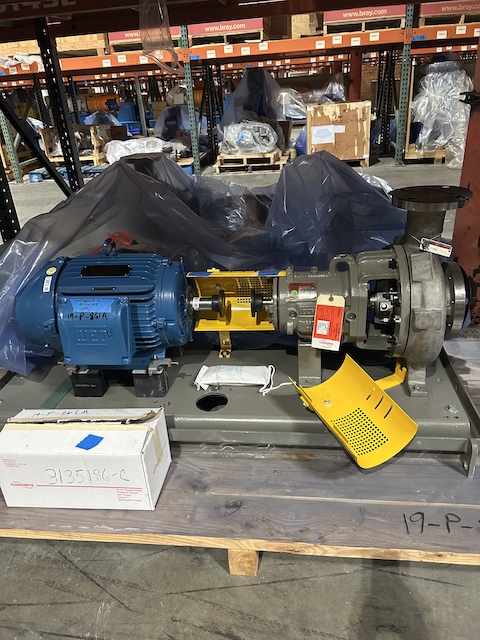 Unused Horizontal Centrifugal Pump. Oil/Earth Reactor Discharge Pump. Mfg. by Durco (Flowserve). 449 gpm @ 90' head. Size 2K4x3-10HRV-10.00. Type MK3 STD. MDP 275 psi @ 100 deg. F. 306 deg. F. Casing: 316SS. Impeller: CD4M. 20 HP motor.