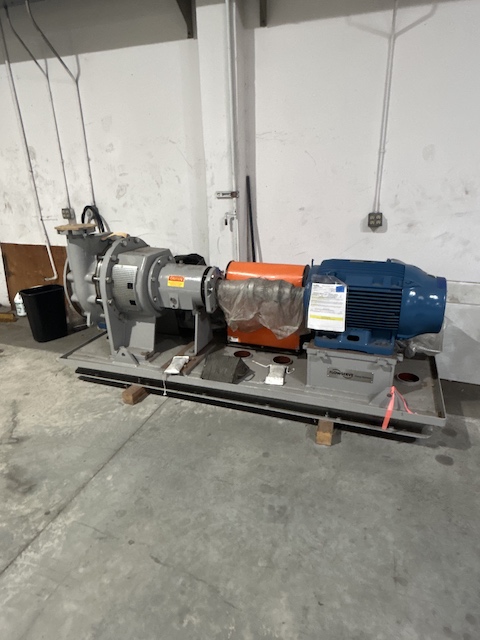 Unused Horizontal Centrifugal Pump. PE Maturator Feed Pump. Mfg. by Durco (Flowserve).523 gpm @ 168' head. 306 deg. F. Casing: HC600. Impeller: HC600. 75 HP motor.