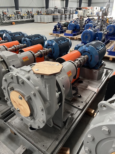Unused Horizontal Centrifugal Slurry Pump. Bleaching Filter Feed Pump. Mfg. by Durco (Flowserve). 597 gpm @ 236' head. 248 deg. F. Casing: HC600. Impeller: HC600. 100 HP motor.
