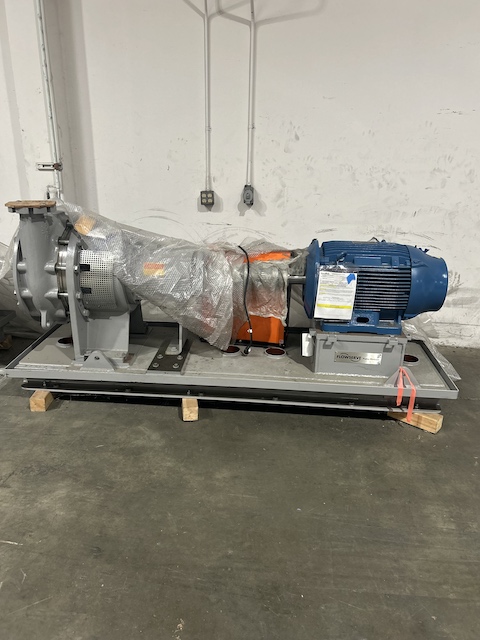Unused Horizontal Centrifugal Slurry Pump. Bleaching Filter Feed Pump. Mfg. by Durco (Flowserve). 597 gpm @ 236' head. 248 deg. F. Casing: HC600. Impeller: HC600. 100 HP motor.