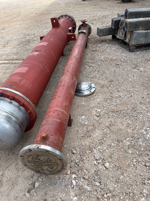 Used 94 Sq Ft 304L stainless Steel Shell and Tube heat exchanger. Mft. by Taylor Tank Co. Inc. in 2013. (40) .75" 304L SS Tubes MAWP 150 PSI @ 200 deg. F. Carbon Steel shell MAWP 150 PSIG @ 200 deg. F.