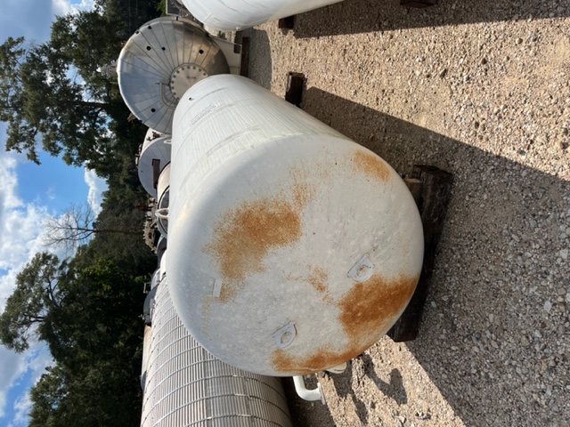 Used 2000 gallon vertical carbon steel air receiver. Mfg. by Steel Fab in 2016. 5'0" diameter x 12'7".150 psi @ 400 deg. F. Skirt supported. Dished top and bottom heads. .375" thick shell wall.