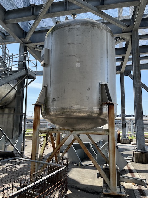 Unused 2505 gallons Vertical 316L Stainless Steel Vessel. Manufactured by (Pagent Equipment) Crown Iron Works in 2007. Dished Heads, Lug/Legs Supports. Rated 25 psig @ 250ºF. 11'2" Overall Length. (4) Internal Sidewall Baffles. Set up for Top Center 8" Flange Mount Agitation. 20" Top Manway, 3/16" Thick Shell Wall.