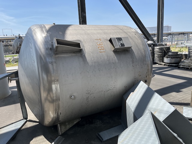 Unused 2505 gallons Vertical 304L Stainless Steel Vessel. Manufactured by Crown Iron Works (Pagent Equipment) in 2007. Dished Heads. Lug Supports. Rated 25 psig @ 250ºF. 10'11" Overall Length. Set up for Top Center 24" Flange Mount Agitation. 3/16" Thick Shell Wall.
