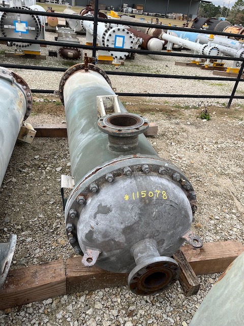 Used 765 sq. ft. Carbon Steel Heat Exchanger. Mfg. by Doyle & Roth in 2005. 24" diameter x 8'0" F/F. Carbon Steel Shell, 150FV @ 400 deg. F. Carbon Steel Tubes, 150FV @ 400 deg. F., (487)-3/4" o.d. x .083". Previous Service: RX2208 Jacket Water Heater.