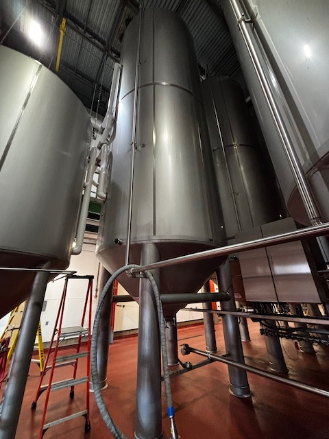 Used 16,600 Gallon, Model "F" Special cone bottom, 304 Stainless Steel tank, dimple jacketed, cone bottom. Manufactured by Mueller. Dished head. 10' 1 7/8" OD x 36' 11 3/8" O.A.H., Shell rated 15 psi @ 100F. Jacket rated 100 psi @100F. Weight 13200 lbs. Built 1995. Previous use: 400 BBL brewery fermentation vessel.