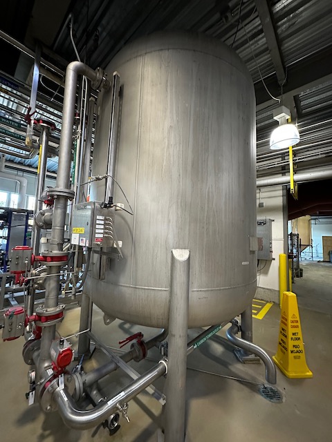Used vertical pressure vessel. Manufactured by Apache Stainless Equipment. MAWP 100 PSI @ 230 F. Dome top, Dish bottom. (4) Leg mounted. Built 2008. Past Use Carbon Tower.