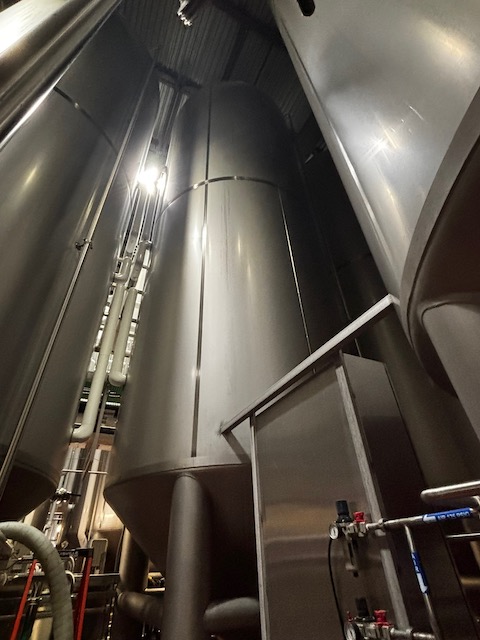 Used 16,600 Gallon, Model "F" Special cone bottom, 304 Stainless Steel tank, dimple jacketed, cone bottom. Manufactured by Mueller. Dished head. 10' 1 7/8" OD x 36' 11 3/8" O.A.H., Shell rated 15 psi @ 100°F. Jacket rated 100 psi @ 100°F. Weight: 13,200 lbs. Built in 1995. Previous use: 400 BBL brewery fermentation vessel.