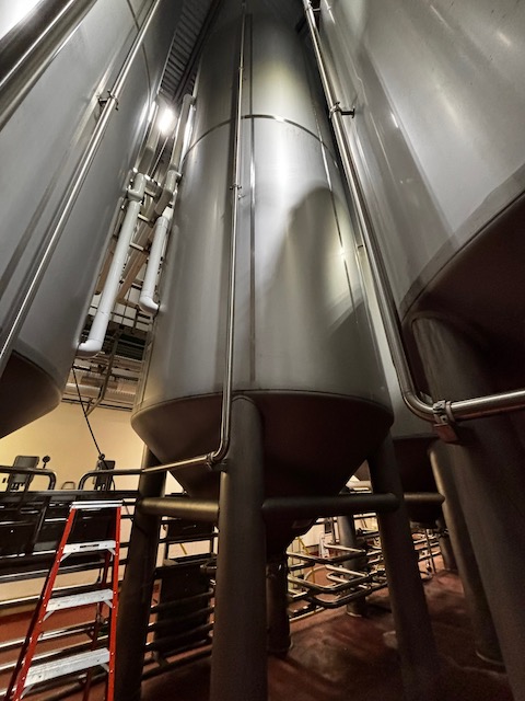 Used 16,600 Gallon 304 Stainless Steel tank, dimple jacketed, cone bottom. Manufactured by Mueller. Dished head. 10' 1 7/8" OD x 36' 11 3/8" Tall. Shell rated 15 psi @ 100 F. Jacket rated 100 psi @ 100 F. Weight 13200 lbs. Previous use: 400 BBL Brewery Brite Tank.
