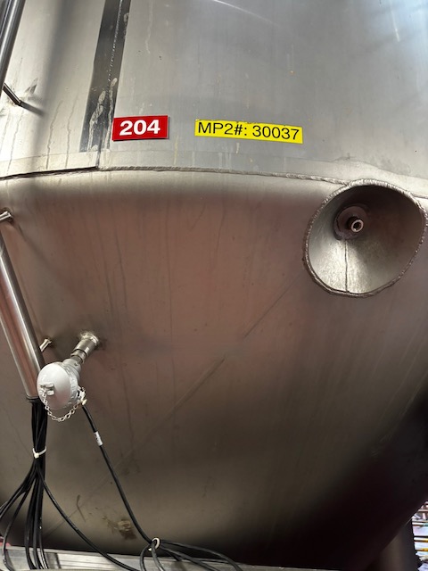 Used 16,600 Gallon, Model "F" Special cone bottom, 304 Stainless Steel tank, dimple jacketed, cone bottom. Manufactured by Mueller. Dished head. 10' 1 7/8" OD x 36' 11 3/8" O.A.H., Shell rated 15 psi @ 100 F. Jacket rated 100 psi @ 100 F. Weight 13200 lbs. Built 2008. Previous use: 400 BBL brewery fermentation vessel.