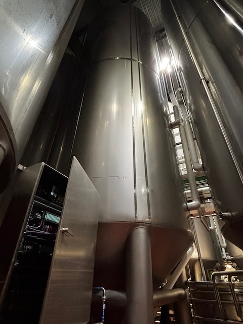Used 16,600 Gallon, Model "F" Special cone bottom, 304 Stainless Steel tank, dimple jacketed, cone bottom. Manufactured by Mueller. Dished head. 10' 1 7/8" OD x 36' 11 3/8" O.A.H., Shell rated 15 psi @ 100°F. Jacket rated 100 psi @ 100°F. Weight: 13,200 lbs. Built in 2008.Previous use: 400 BBL brewery fermentation vessel.