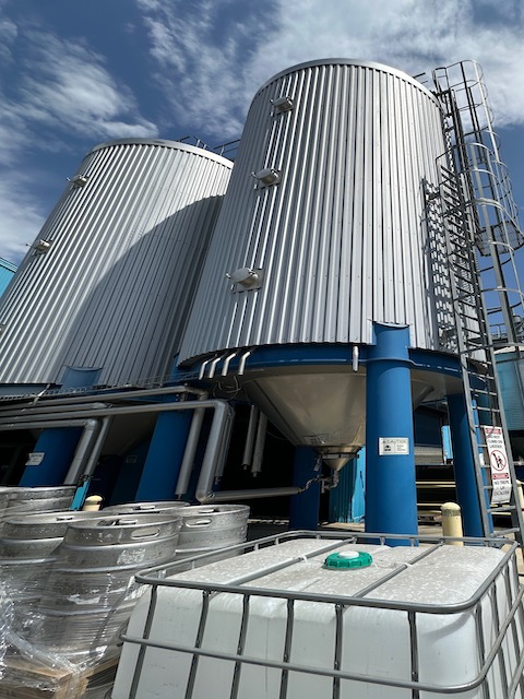 Used 27000 gallon (874 BBL) 304 stainless steel jacketed pressure vessel. Manufactured by Ziemann Holvrieka. Vessel Rated 29 psi @ 86°F, jacket rated 43 psi @ 86°F. 13' 7" dia x 42' O.A.H., Dished head and cone bottom. Previously used in brewery as fermenter, cooled with Glycol @ 24°F. Built 2015.