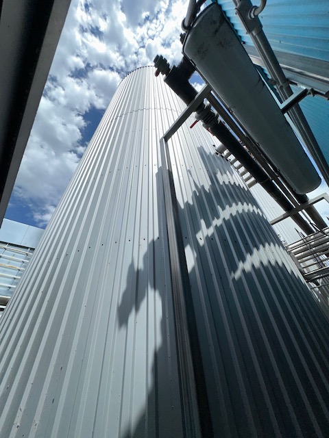 Used 27000 gallon (874 BBL) 304 stainless steel jacketed pressure vessel. Manufactured by Ziemann Holvrieka. Vessel Rated 29 psi @ 86°F, jacket rated 43 psi @ 86°F. 13' 7" dia x 42' O.A.H., Dished top head and cone bottom. Previously used in brewery as fermenter, cooled with Glycol @ 24°F. Built 2018.
