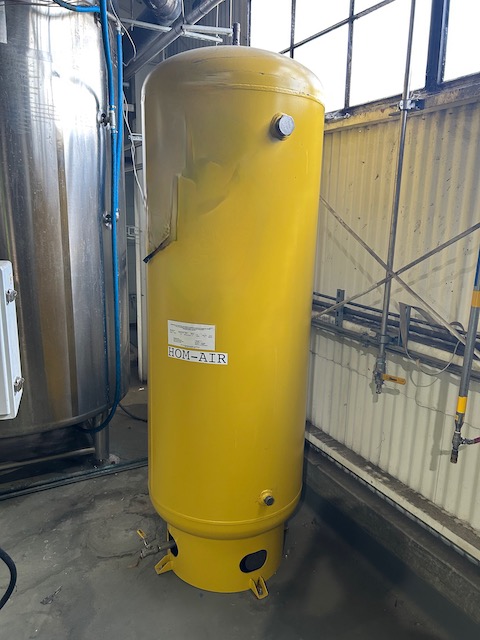 Used 240 gallon vertical Air receiver. Manufactured by Samuel Pressure Vessel group. Model#A10053. Carbon Steel. 30" diameter x 84" T/T. Rated 200 psi @ 400°F. ASMED coded. Dished top & Bottom Heads, Skirt supported.