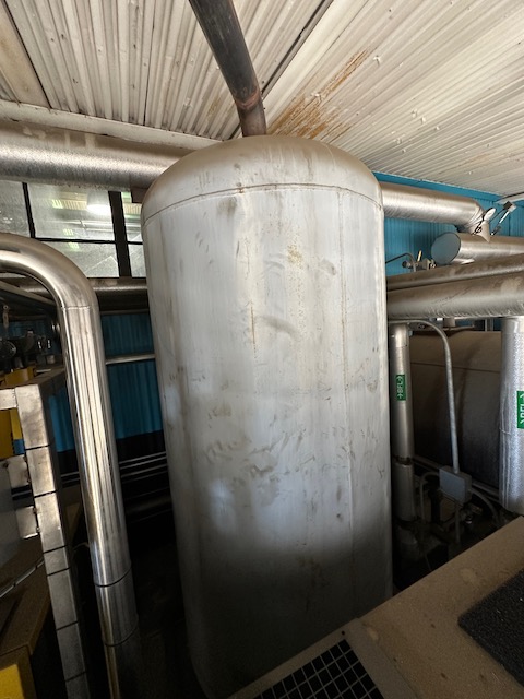 Used Vertical carbon steel air receiver. Dished top and bottom heads. Skirt support.