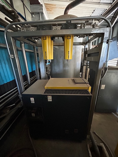 Used 10 HP Screw air compressor. 46 acfm @ 125 psi. Paired with Used refrigeration dryer #115190. Manufactured by Kaeser. Model #ABT-15. 230 psig max pressure. R-513A Refrigerant, 37 - 140 °F inlet temp. Built 2023.