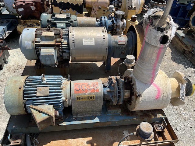 Used 316 stainless steel horizontal centrifugal pump. Mfg. by Klaus Union. 165 gpm @ 128' head. Size 3x1.5x6. Model SLM-AVO-3x1.5x6-09E03. With 15 hp motor, 3600 rpm, 460 volts.