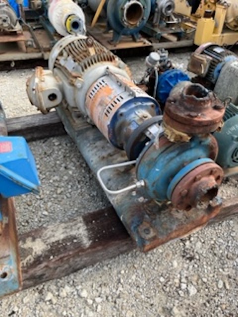 Used horizontal centrifugal pump. Mfg. by Goulds. Model #3196. 500 gpm @ 179' head. Size 4x3x10. DI case, 316 stainless steel impeller. 3600 pump case rpm. With 40 hp motor, 3535 rpm, 230/460 volts.